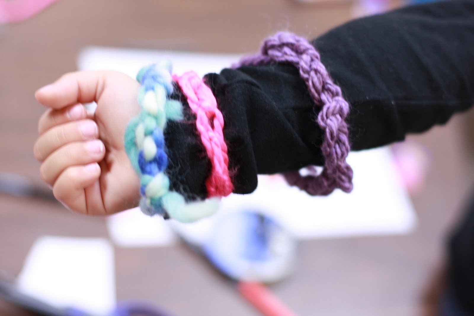 The pattern is "Push in, pull out." The needle will require a little "push" to get through the wool. The child will have the sewing when he/she gets the "rhythmic" movement of the stitch.