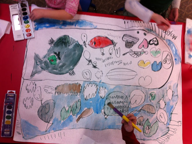 After we completed the chandelier, I let the children decide where it would be hung. They voted to have it above the block center. Beautiful!