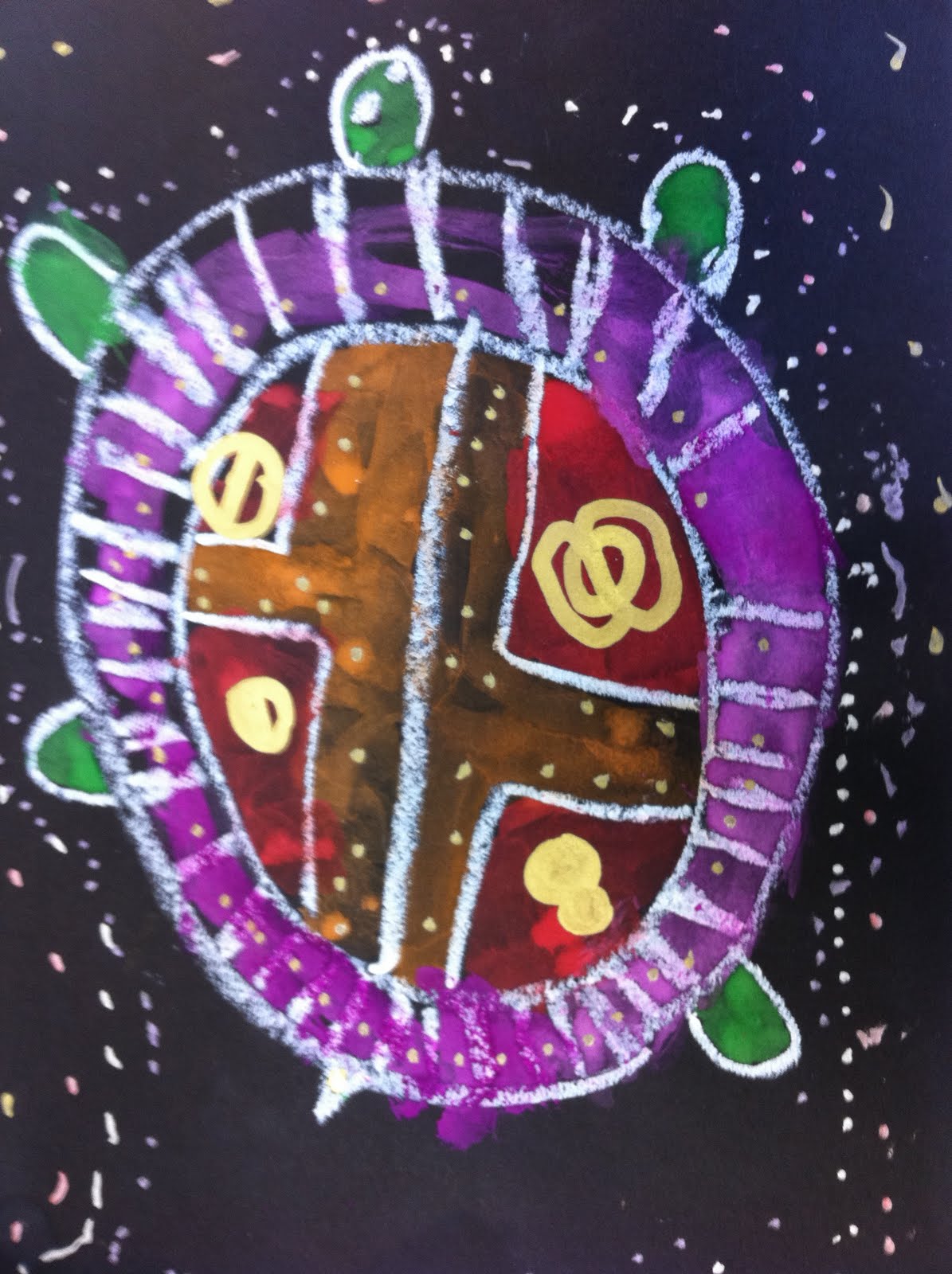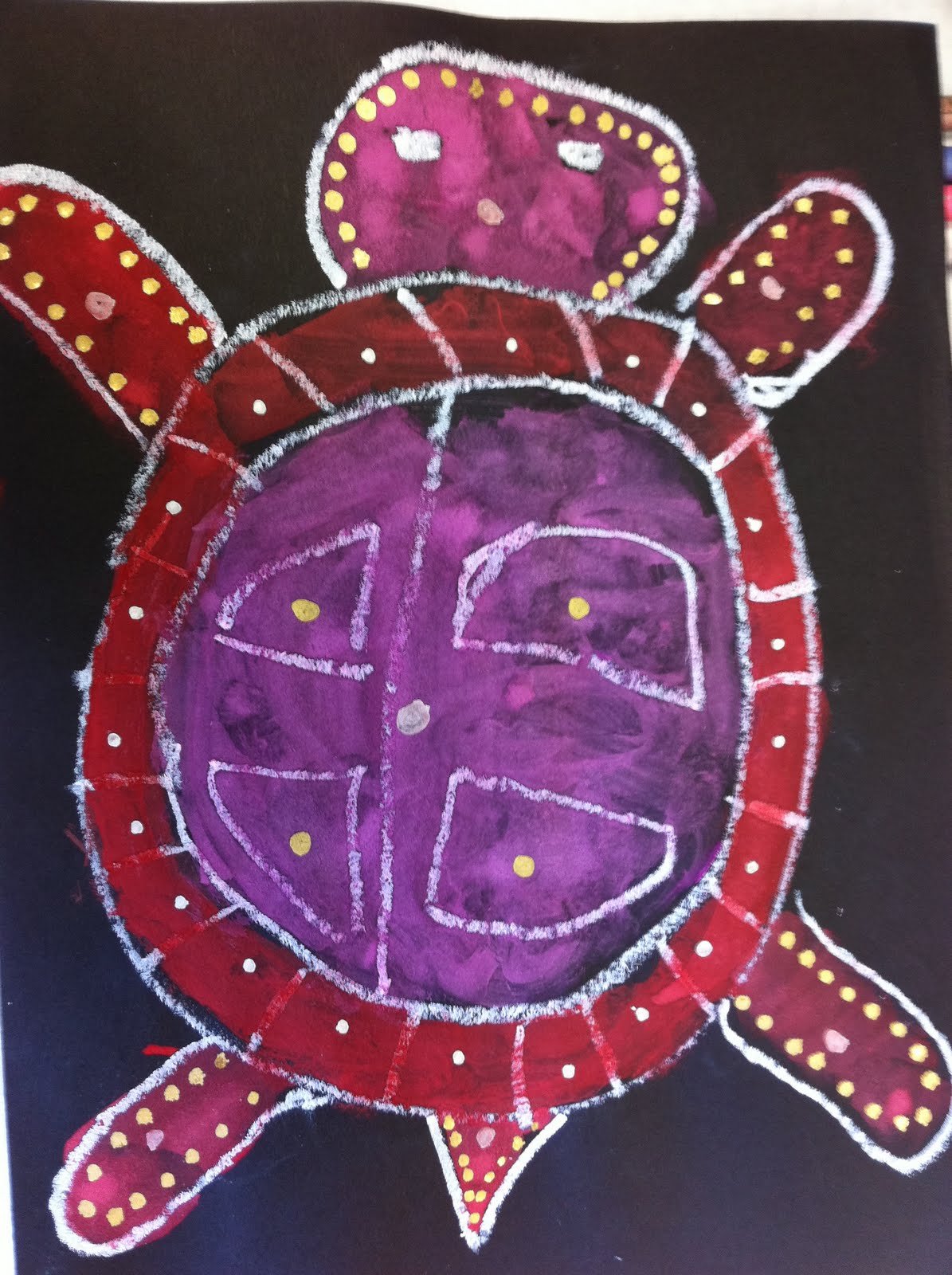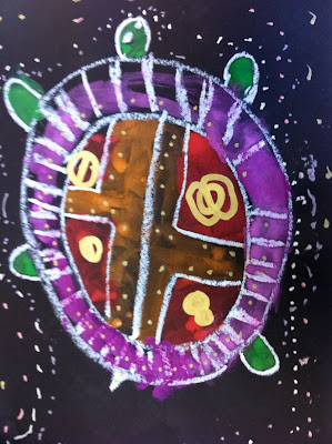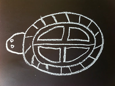 Step Eight: Paint in the different sections of the turtle. Do not paint the background.