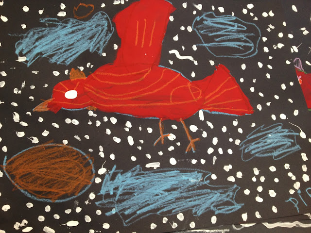 Snow paint: 1 squirt of shaving cream, 1 squeeze of white paint, 1 squeeze of school glue (mix together in dixie cup)