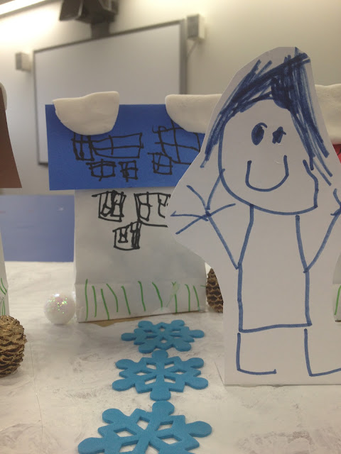 In my kindergarten - I set up making these during Work Stations. I would often put these in my Literacy Station. The children would create the village and then write a story to go along with it.