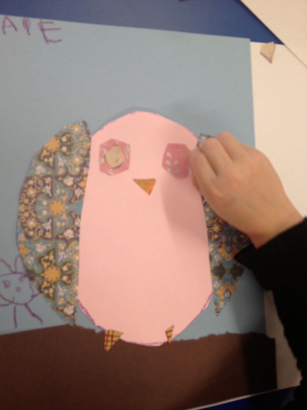 Preparation: I prepare the bag houses by stuffing them with a bit of newpaper and stapling on a construction paper roof.