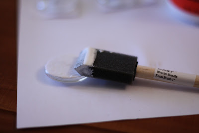 With foam brush, gently paint a thin coat of glue over the top. Do not use too much or your paper will curl and wrinkle.